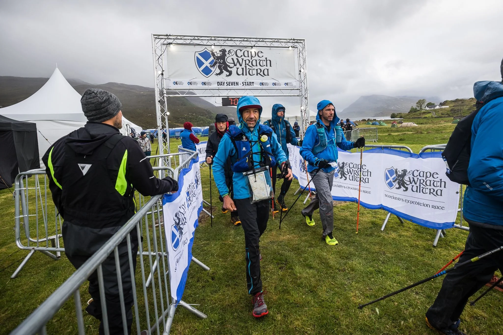 Only 145 participants set out today on the penultimate day of the Cape Wrath Ultra, an epic 8-day journey north from Fort William to the iconic Cape Wrath lighthouse. Only 104 of our incredible runners are still competitive, after being battered by everything the Scottish weather could throw at them earlier on in the race. Today, however, the milder weather that had been promised all week finally made an appearance.