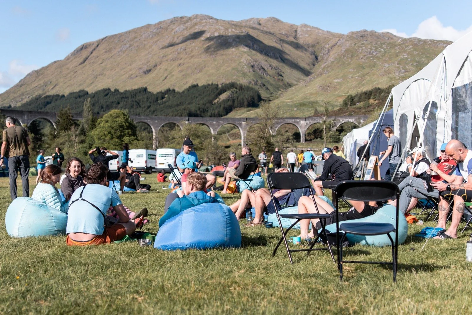 The first overnight camp was in a breath-taking location, and was a real treat for runners after their first day out in the hills. Tucked away underneath the famous Glenfinnan Viaduct (also known as the Harry Potter bridge), runners and Event Team alike enjoyed the sight of the Jacobite steam train going over the bridge.