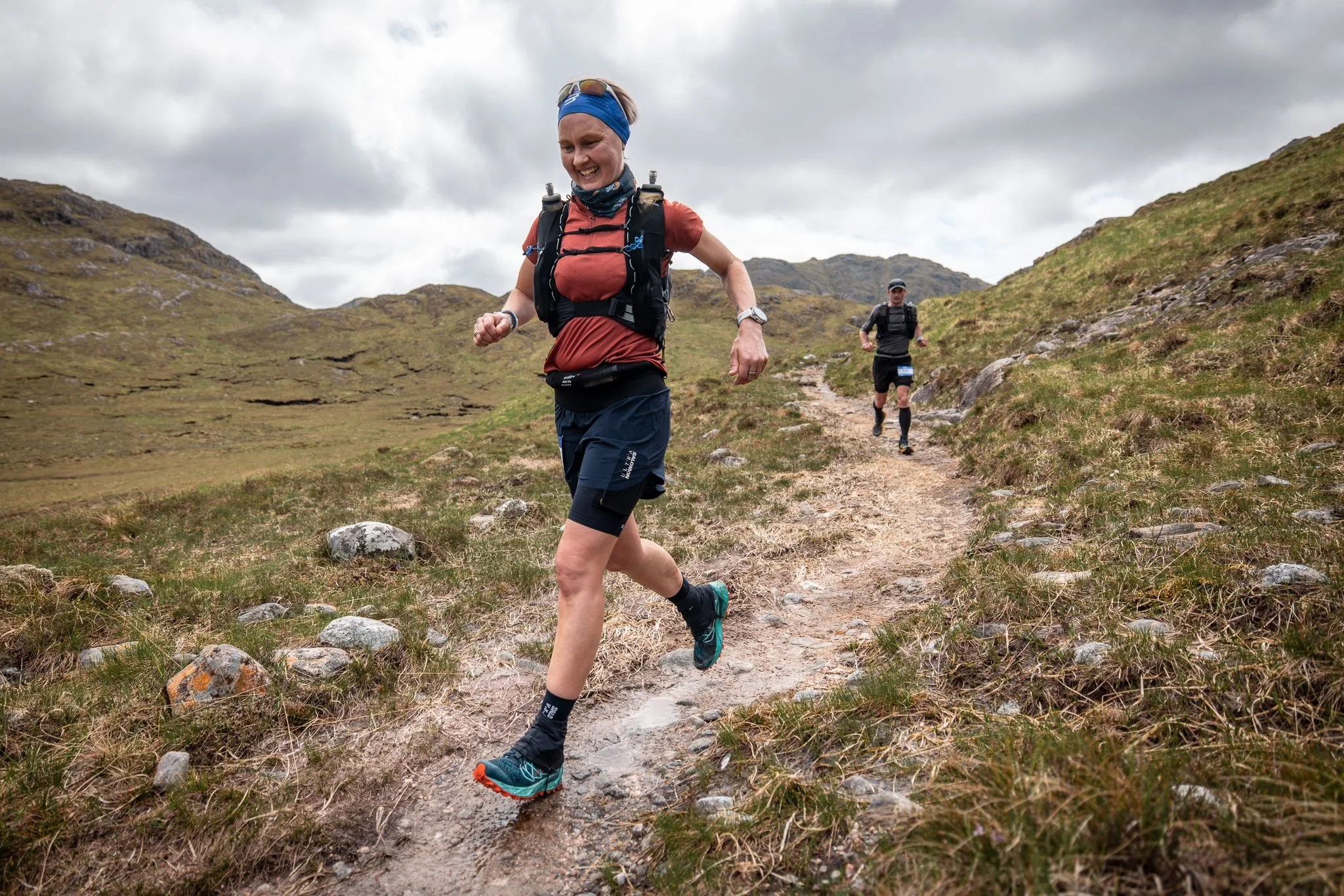 At 37km, day 1 is often seen as an introductory day – a shorter taste of the adventure yet to come. After being set off from the Village Hall at Treslaig, runners first enjoyed a fast and runnable section alongside the beautiful Loch Linnhe before heading into the Highlands. For many, the main challenge today was reining in the pace. It can be all too easy to be swept up in the rush as runners start alongside the flatter trail along the loch. However, with 8 days to go, many of our runners were sensibly setting off slow, anxious not to overcook it too soon. You won’t win the race on Day 1, but you can certainly lose it!