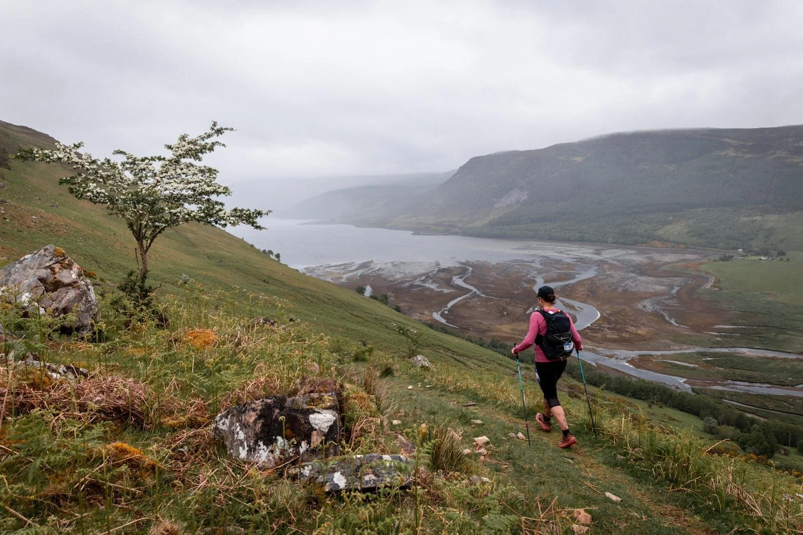 The final descent into camp was one to enjoy. While there were some slippy sections and a few rocks to negotiate, the lovely view of Loch Broom and the welcoming sight of camp in the distance encouraged runners onwards. They could almost smell the chips that awaited them.