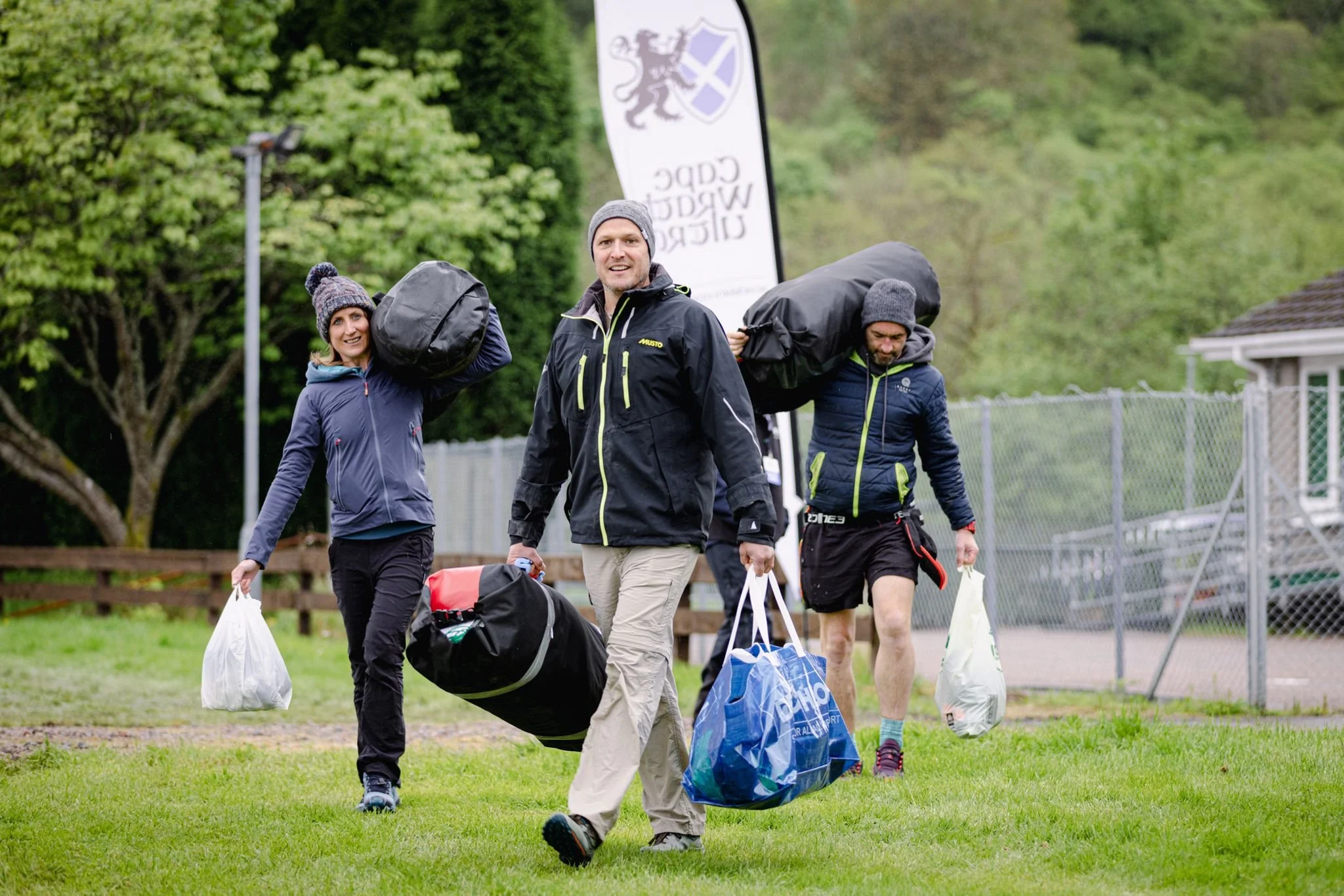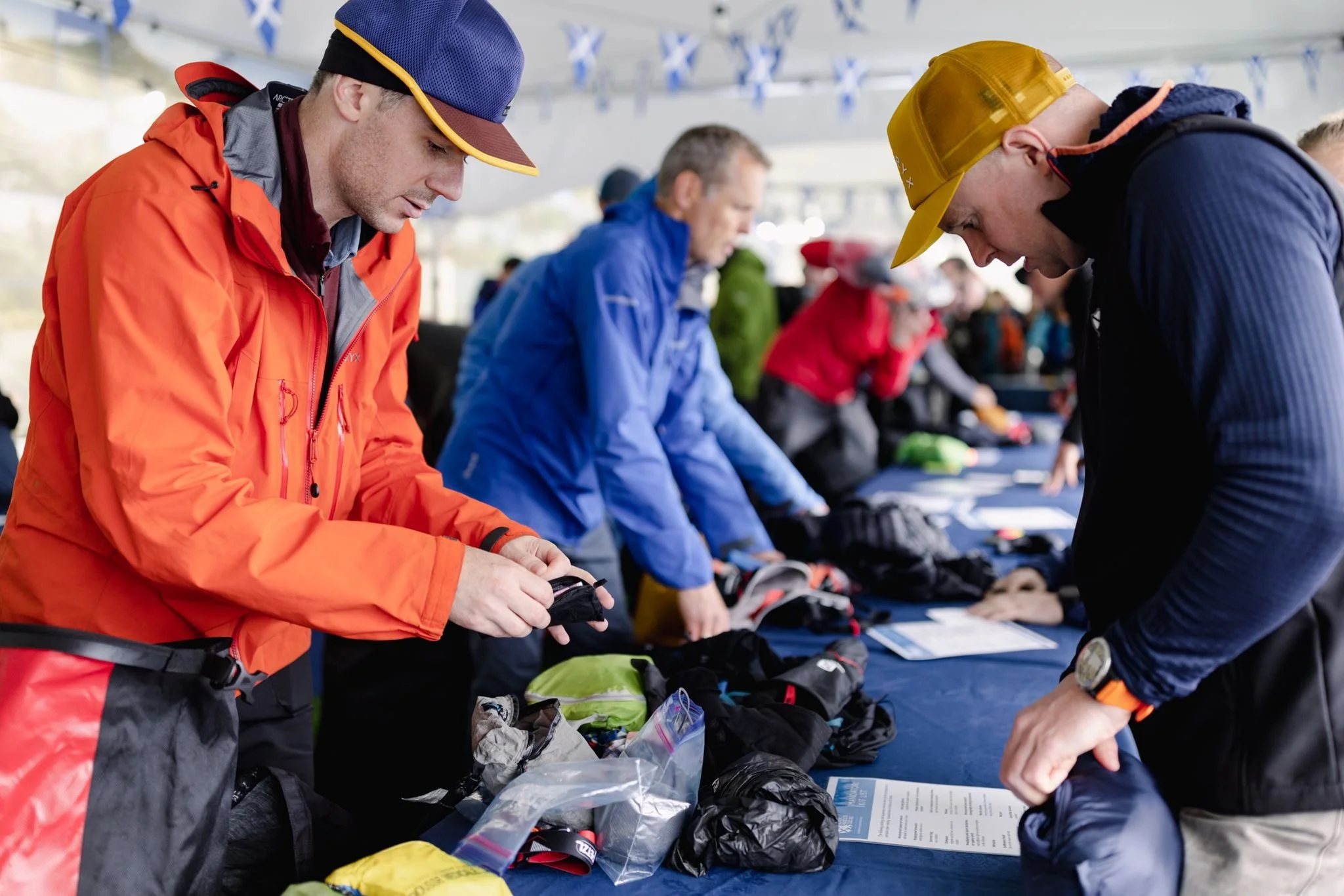 It was typical Scottish weather today, with the sound of rain on the tent roof adding to the sound of excited chatter in the registration tent. However, there was still an excited buzz as participants lined up to collect their exclusive race maps, get their kit checked and drop off their dry bags that will be transported for them between the camps.