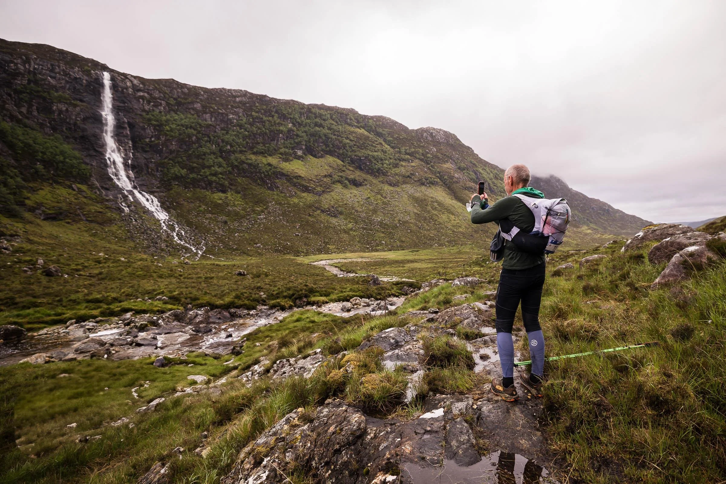 Passing the 200m Eas a’ Chual Aluinn Waterfall - the highest in the UK - participants stopped for a quick photo before making haste to avoid any cut-offs on the final stage of their adventure. For those Ultra competitors who made it into Camp, thoughts are shifting to home life past the Cape Wrath bubble we’ve all been surrounded in for the past week. Tomorrow at 7am they will leave for the final leg of the journey, crossing beautiful Sandwood Bay North, to the iconic Cape Wrath lighthouse, completing a feat that only a few have ever achieved.