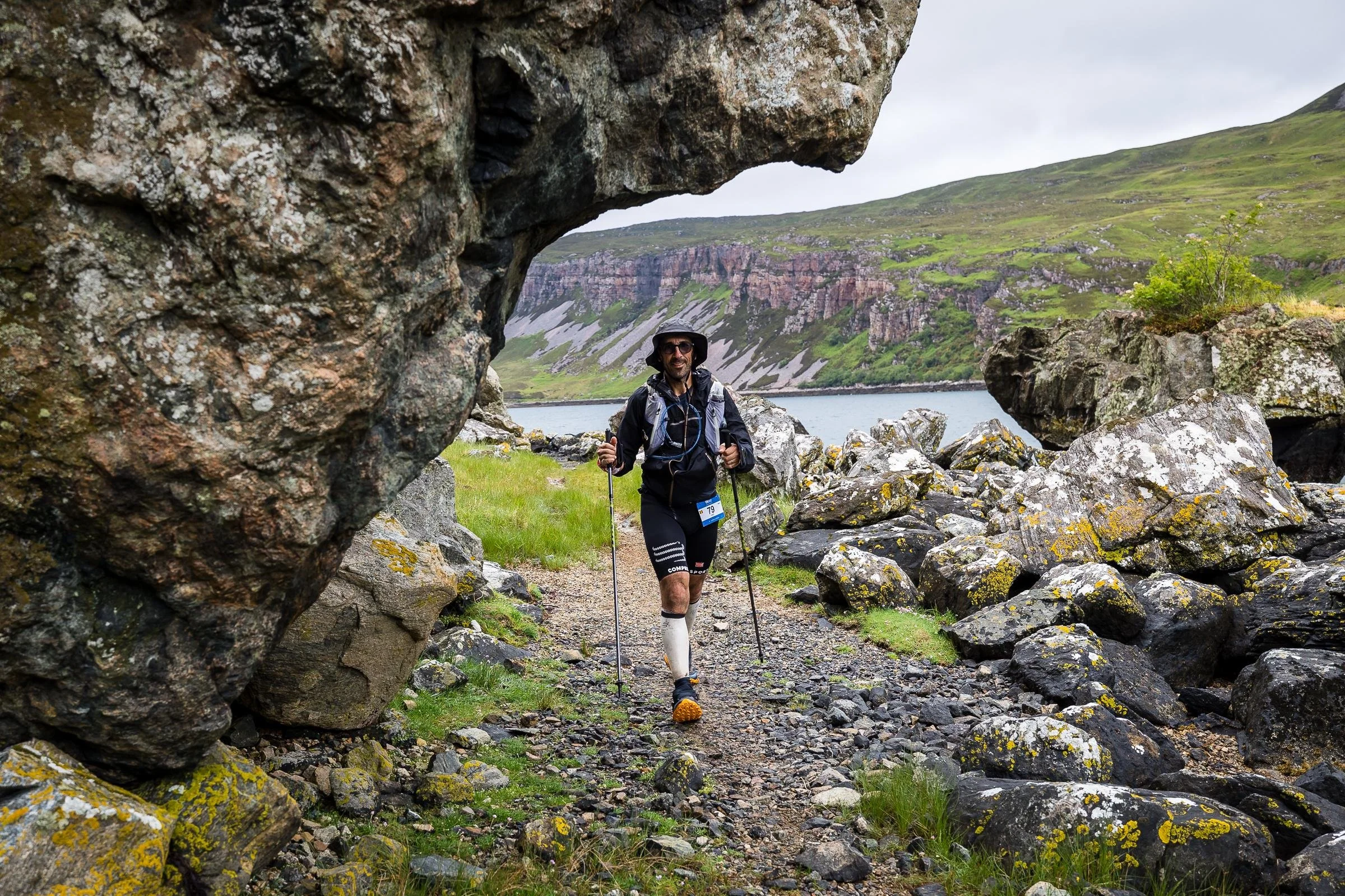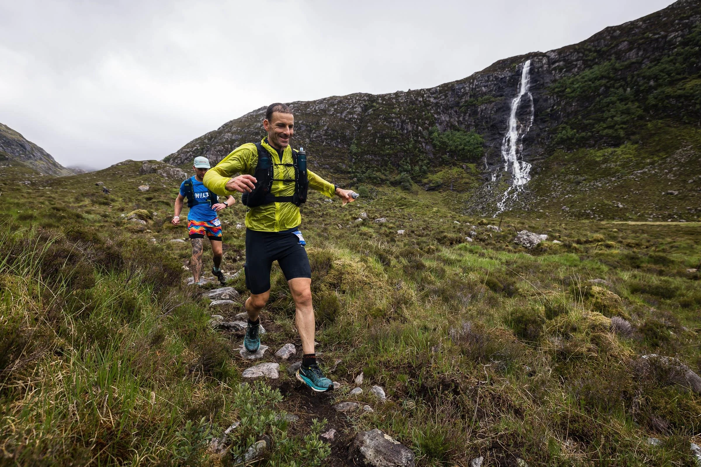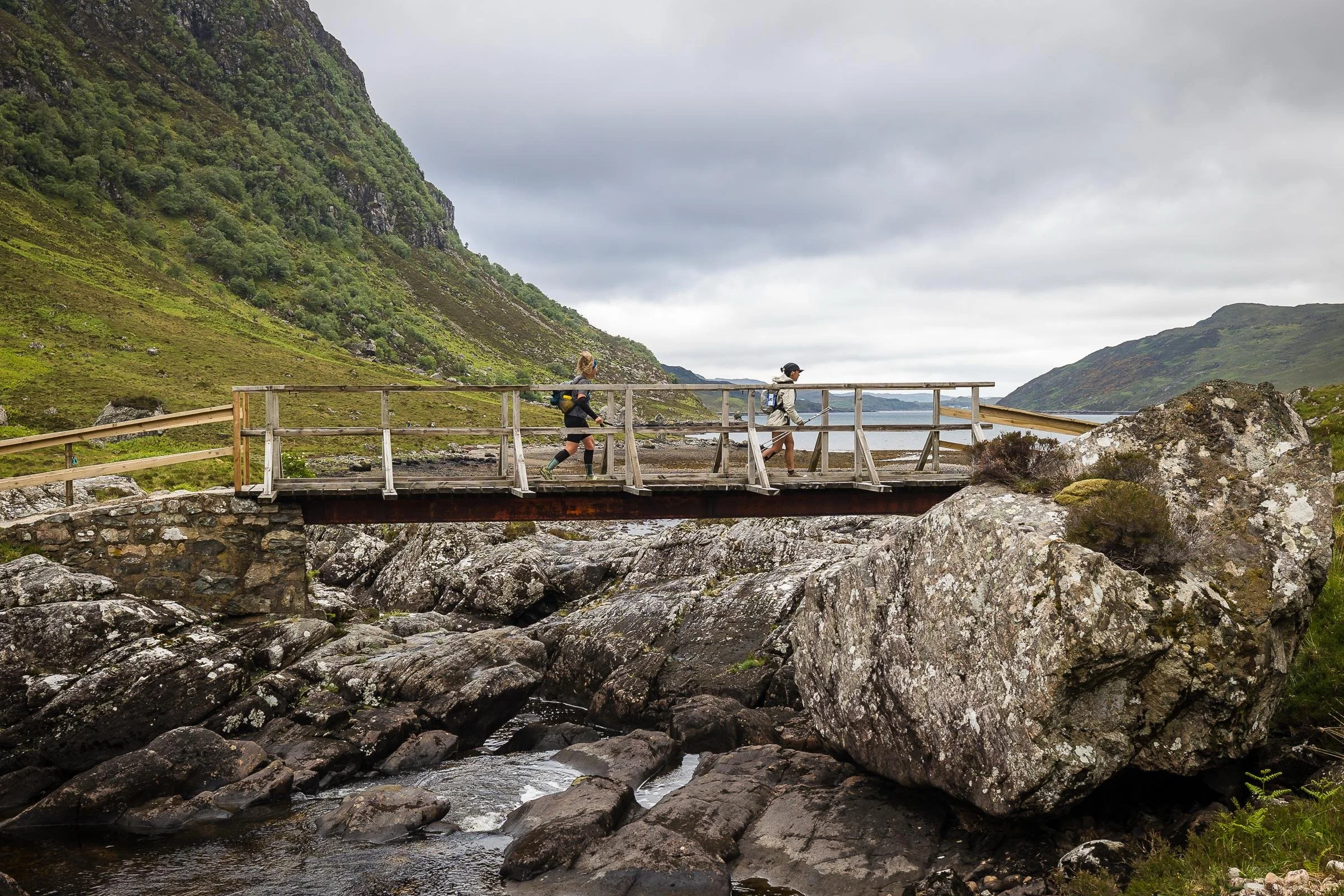 The landscape is ever changeable on Day Seven as our runners traverse moorlands, mountains and around some of the most beautiful deep sea lochs Scotland has on offer. Glacial erosion in the area has created more substantial glens and larger hill lochs, with small rocky outcrops, fondly described as ‘knock-and-lochan’ topography. After a week of piercing blue skies and a fiery sun, the hot weather has parted ways to rolling low clouds, light rain showers and cooler temperatures, which the runners appeared to welcome with open arms.